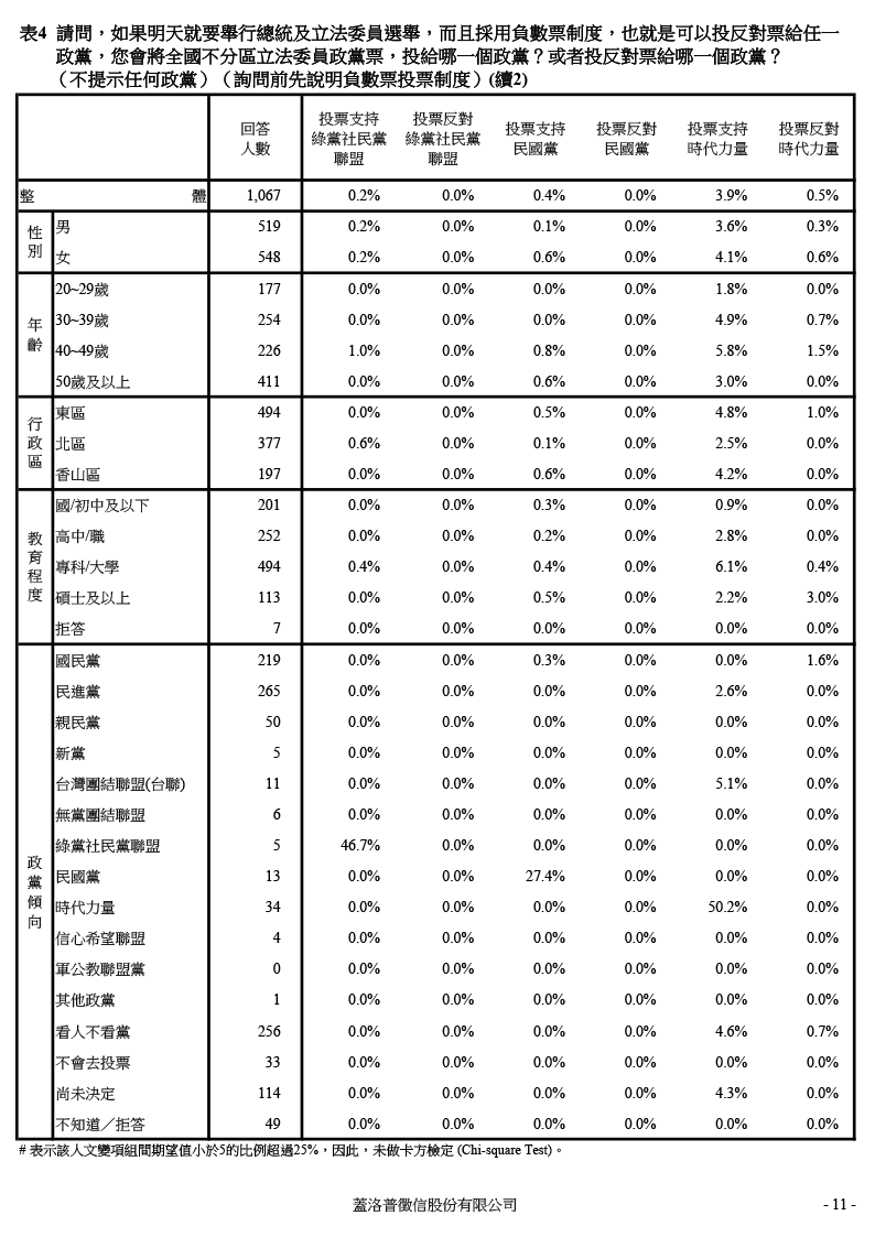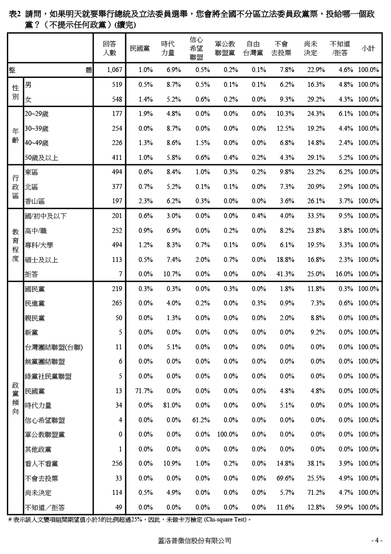 【負數票投票對2016新竹市立委選情影響意見調查】交叉分析報表 2016.01.02